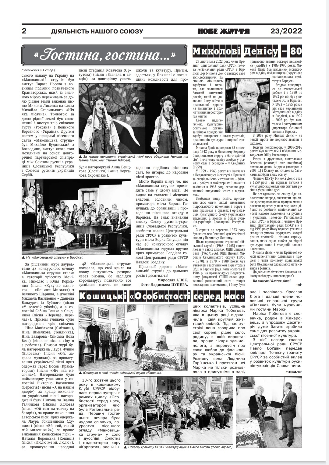 Найстарши фолклорни фестивал у Словацкей, Швето русинско-українскей култури у Свиднїку, того року отримани уж по 71-раз, 20. и 21. юния, а на нїм наступела и Виводзацка фолклорна ґрупа Руского културного центра з Нового Саду