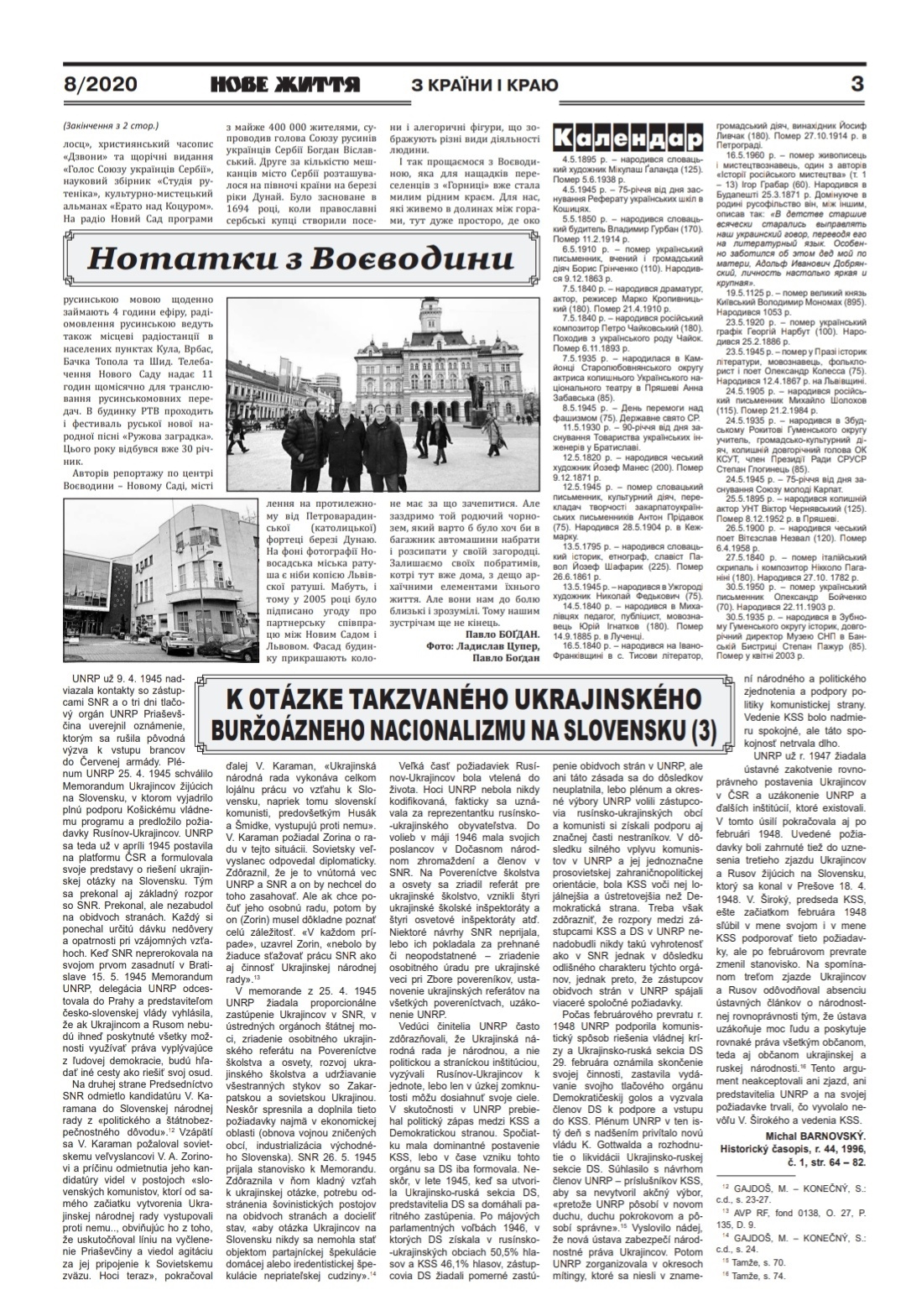 - Одржана је он лајн научна конференција у Пољској, у граду Перемишљу, под називом "Украјинци и њихови суседи кроз векове". Конференција је одржана дана 11. и 12. септембра 2020. године , на којој су са својим радовима учествовали професор Никола Цап и новинар Велимир Паплацко.