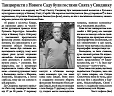 Виводзацка фолклорна ґрупа Руского културного центра з Нового Саду на 71. Швету русинско-українскей култури у Свиднїку участвовала у орґанизациї Союзу Руснацох Українцох Сербиї, партнерскей орґанизациї Союзу Русинох-Українцох Словацкей Републики, котри и того року бул главни орґанизатор того фестивала.