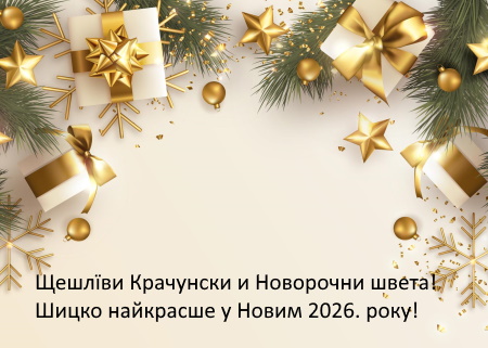 Жадаме Вам и Вашим найблїзшим щешлїви и весели Крачунски и Новорочни швета, вельо здравя и радосци и успишни Нови 2025. рок!