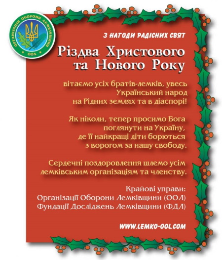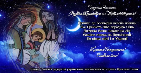 Світова Федерація Українських Лемківських Об’єднань сердечно вітає українські лемківські русинські громади світу, Управи Суб’єктів Федерації та Фундацій Дослідження Лемківщини, всіх щирих і небайдужих людей, які трудяться задля збереження нашої культурної, духовної та історичної спадщини, з Різдвом Христовим і Новим 2021-им роком!