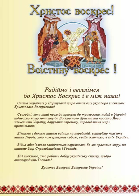 від імені Управи «Европейського Конгресу Українців» Вітаємо з Великоднем.